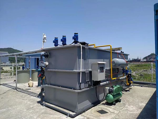 廢水由污水泵從調(diào)節(jié)池抽向氣浮池。這樣可使藥液和污水通過(guò)污水泵的葉輪旋轉(zhuǎn)而得到充分的混合。藥液由自動(dòng)加藥裝置供給。加過(guò)藥的污水進(jìn)入氣浮池中,污水得到充分的聚凝。